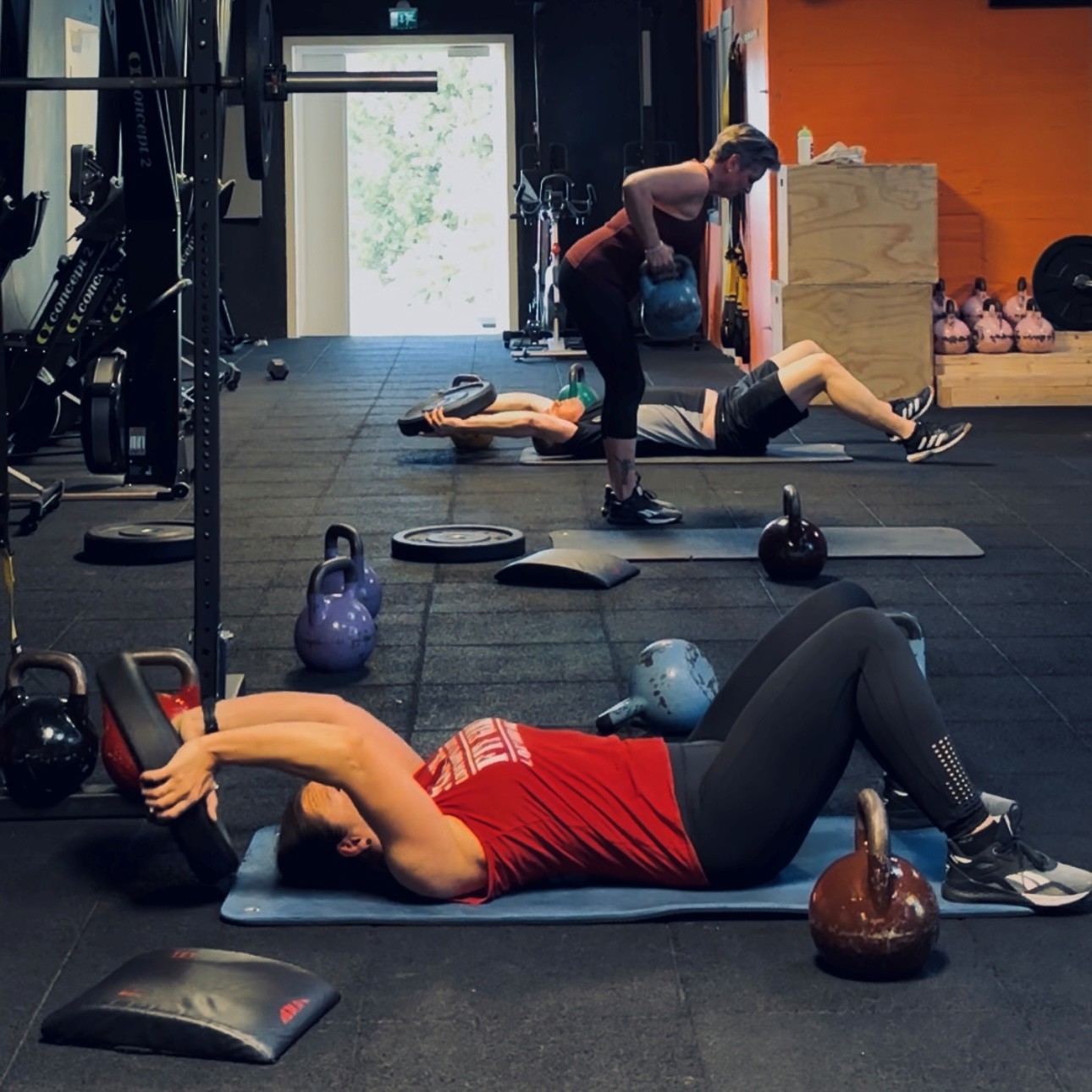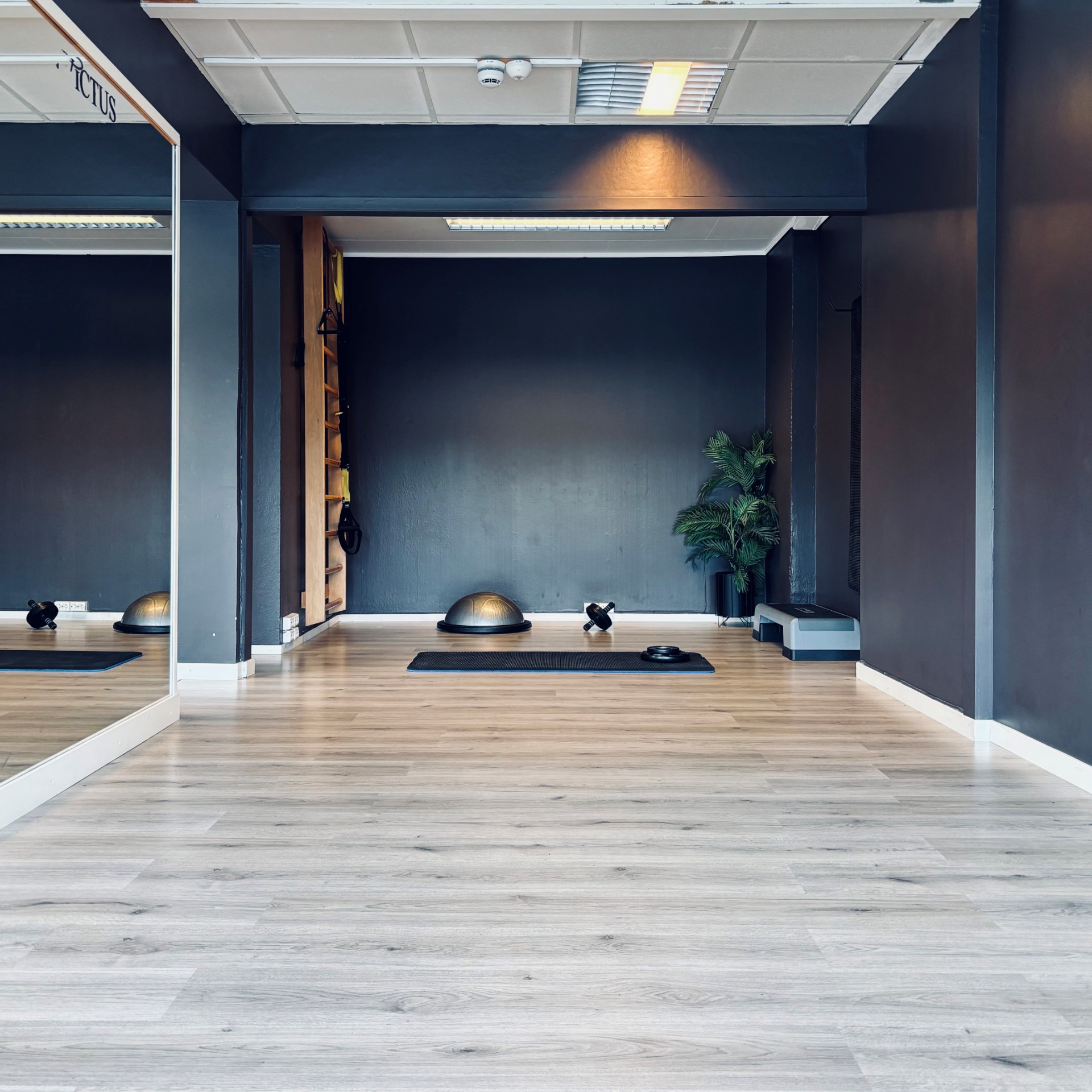 Stort rom med speil til uttøyning, mobilitets trening og lett styrke men kroppsvekt eller enkelt utstyr.
