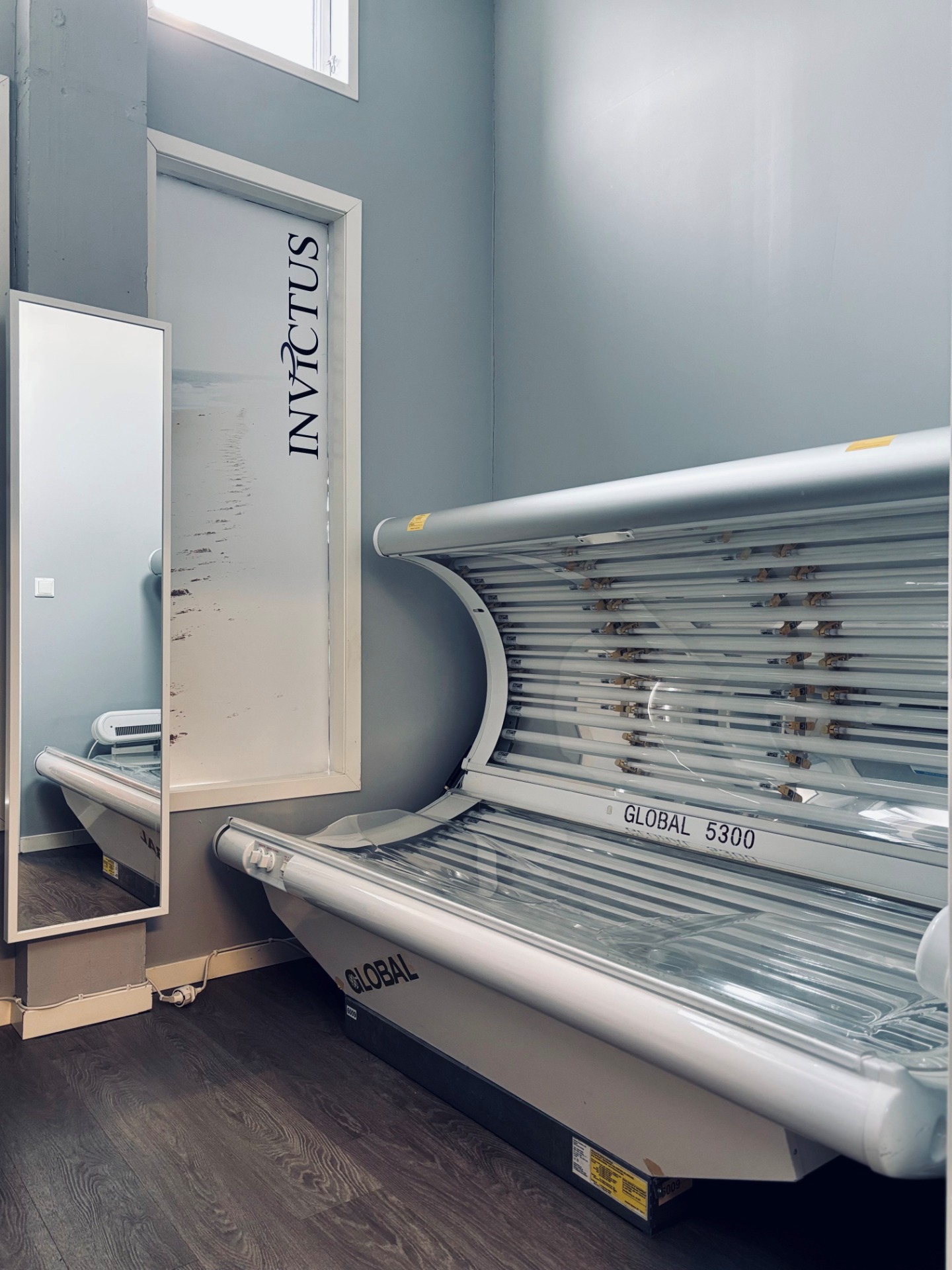 Ved inngangen har vi et solarium med en seng. Betales gjennom app, og kan brukes hele åpningstiden.